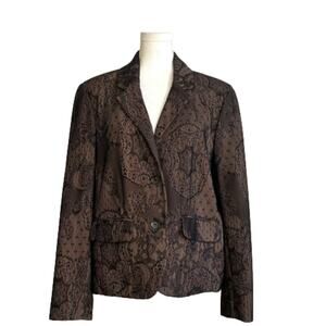 Rafaella Blazer Brown Black Lace Overlay Flap Pockets Career Jacket Size 12