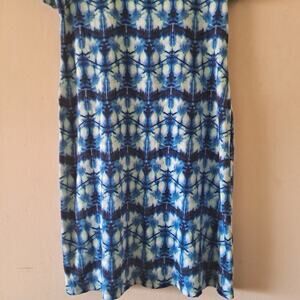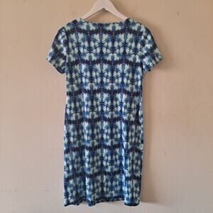 Rafaella Blue, White & Green Tie Dye Print Cotton Dress Crewneck Women's Size M