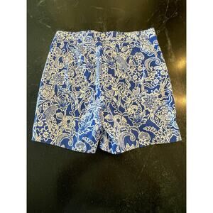 Rafaella Blue and White Floral print pull on shorts 12 NWOT
