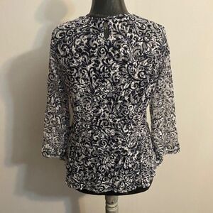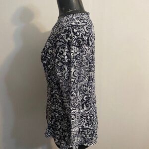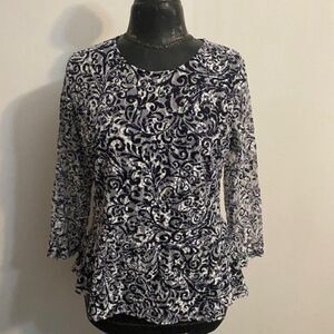 Rafaella Blue/Gray/White Paisley 3/4 sheer sleeves Peplum top, size L
