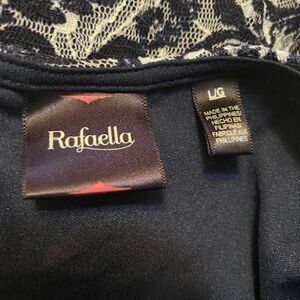 Rafaella Blue/Gray/White Paisley 3/4 sheer sleeves Peplum top, size L (95% Polyester, 5% Spandex, Lining 100% Polyester)