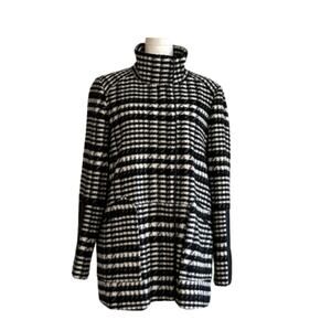 Rafaella Car Coat Black White Brushed Plaid Faux Leather Detail Outerwear Large