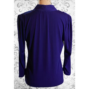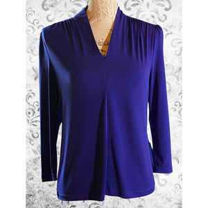 Rafaella Career Casual Womens M Purple Stretch V-Neck Pleated Preppy Top