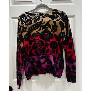 Rafaella Colorful Paisley Button Cardigan Cotton Sweater XL Beautiful! Holiday