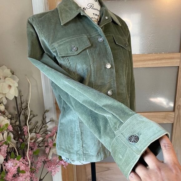 Rafaella Corduroy Jacket Green Woman's Size 8 Button Up Lightweight