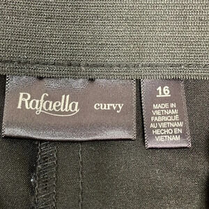 Rafaella Curvy Black Satin Twill Ankle Pant in size 16. Excellent like new condition. Comfort waist with elastic, zipper, button and hook and bar front closure, two front and two back pockets, style RSBB0116, stretch fabric, slim leg, flat front, back center seam. Please see photos for approximate measurements and details. Item may show difference in color based upon photography and perception. Photos are part of the description, as everyone’s level of condition may vary. From smoke free and pet free home. All packages are shipped the same or next business day.