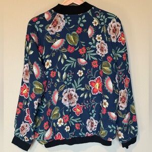 Rafaella D’Angelo Floral Front Zip Bomber Jacket Size Small