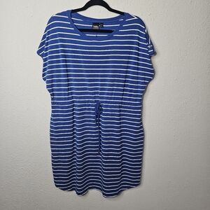 Rafaella Dress Womens XL Blue White Striped Short Sleeve Midi Casual Sporty