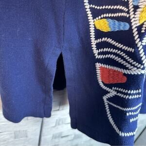 Rafaella Embroider feather 3/4 Tee-Shirt navy Aztec southwestern in excellent condition