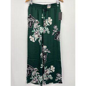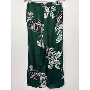 Rafaella Floral Pull On Wide Leg Pant Sparkling Green Black Size Medium NEW