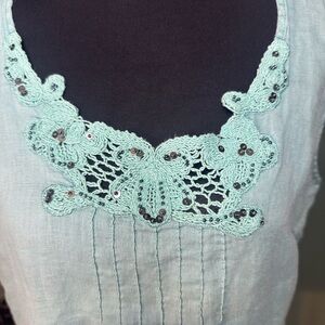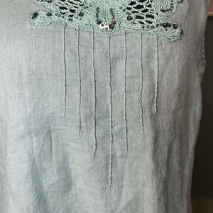 Rafaella Green Lace Linen Tank Top Size M
