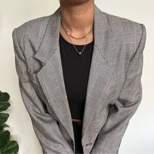 Tags: plaid, houndstooth, wool, 80s, academia, dark academia, blazer, business casual, preppy, chic, professional, shoulder pads, corpcore