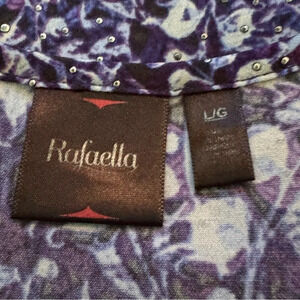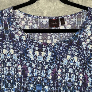 Rafaella L Large Shirt Top Blue Geometric 3/4 Sleeve Scoop Neck Asymmetrical Hem