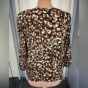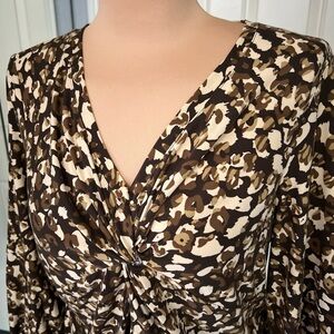 Rafaella Leopard Print Twist Front V Neck Stretch Blouse Top