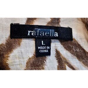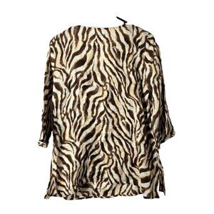 Rafaella Linen Tunic L Zebra Animal Print Beaded Boho Travel 3/4 Sleeve Coastal