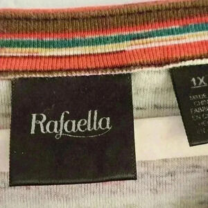 Rafaella Multi Stripe 100% Cotton Tunic With Gold Button Detail Size 1X