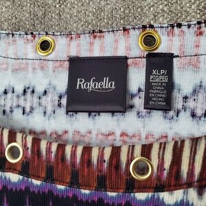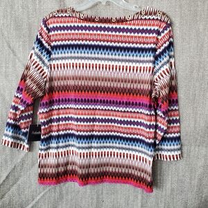 Vibrant multicolor top with a striking pattern. Features a mix of red, blue, and white hues. Perfect for adding a pop of color to your wardrobe.