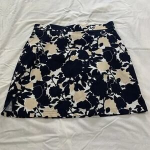 Rafaella Navy Blue Floral Pull-on Comfort Stretchy Skort Skirt Side Slits Sz M