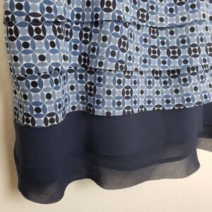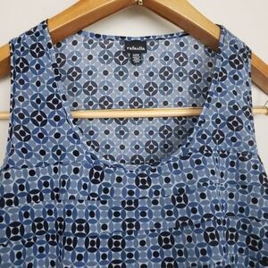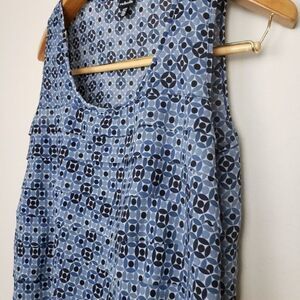 Sleeveless, round neck, ruffle front, lightweight, navy, tank top, machine wash, 100% polyester