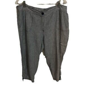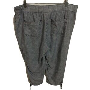 Rafaella Pants Size 12 Linen Blue White Stripes Nautical Ankle Drawstrings Cargo