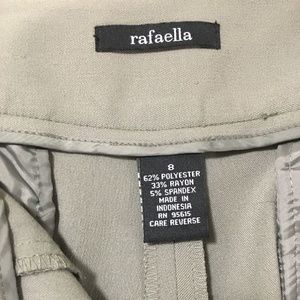 Beautiful softer shade of green. EUC Rafaella Fall Winter cuff pants, two side pockets, two welt back pockets. The label has size 8 see measurements below. Will fit between a size 10 or 12 please check measurements below before purchase.