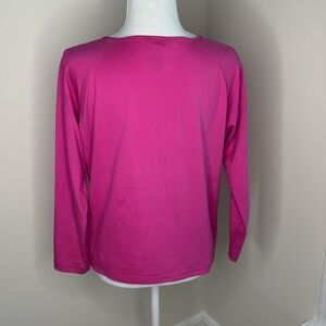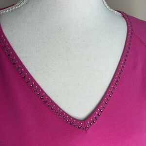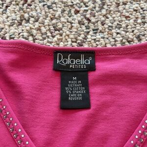 Rafaella Pink V-Neck Crystal Embellished Pullover Top. Medium