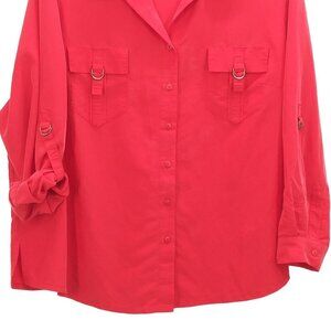 Rafaella Plus Size 3X Top Red Button-Down Shirt Adjustable Sleeves Front Pockets