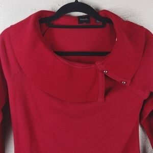 Rafaella Red Shawl Collar Long Sleeve High Low Hem Pullover Cotton Sweater Top