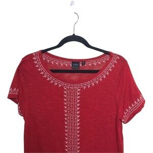 Rafaella Red Short Sleeve Embroidered Tee T Shirt