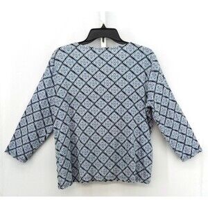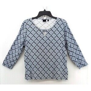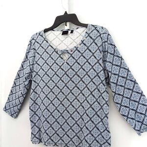 Rafaella Shirt Women Size XL Blue Geometric 3/4 Sleeve Keyhole Neck Casual Top