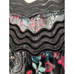 Rafaella Size L Velvet Floral Print Scallop Trim Blouse Top