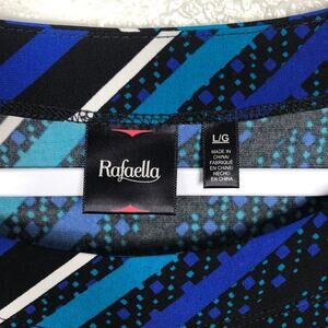 Rafaella Size Large Blue Geometric Zig Zag Print Blouse 3/4 Sleeve Zipper Detail