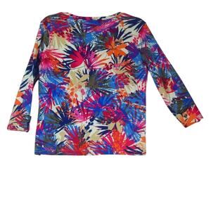 Rafaella Size Medium 100% Cotton Floral Cardigan Sweater Button Front Artsy