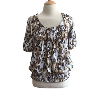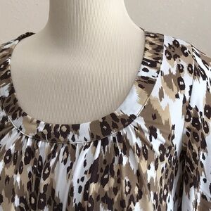 This easy care top is in excellent preowned condition and ready to wear. Pit to pit is 17” and length is 22”.