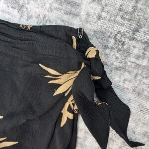 Rafaella Skirt Womens 12 Black Gold Silk Wrap Midi Floral Botanical Tropical