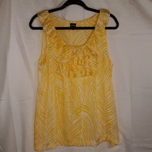 Rafaella Sleeveless Blouse Women's 14 EUC Ruffles Shirt Yellow/White Tank Top
