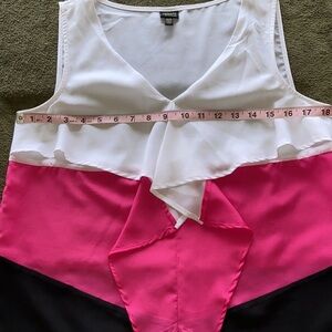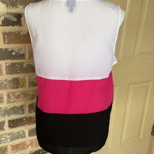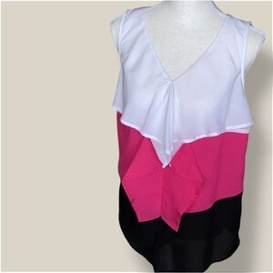 Rafaella Sleeveless Tank Tiered Ruffle Colorblock Black White Pink Fuchsia M