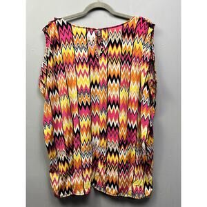 Rafaella Sleeveless top Womens Plus Size 1X Chevron Pink Orange Stretch
