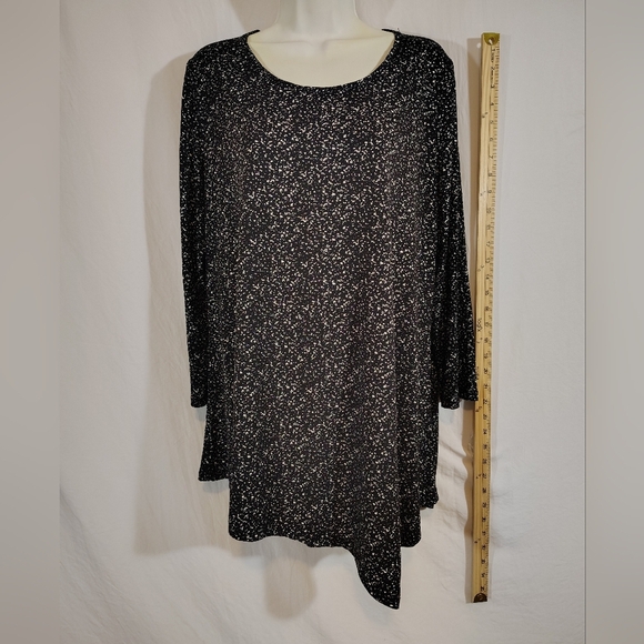 Elegant long sleeve top with a speckled design. Perfect for versatile styling. large. 0031