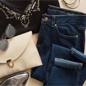 Sleek and stylish, these Rafaella Weekend slimming denim jeans have a hint of stretch that hugs your curves and helps you move comfortably through your day. These women’s jeans feature functional front and back pockets for a classic look and provide handy storage space for on-the-go essentials and the versatile dark wash for a modern look.