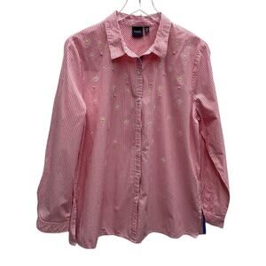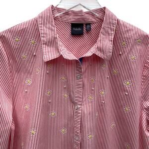 Rafaella Stripe Blouse Shirt Embroidered Daisies & Bead Embellished SZ XL