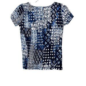 Rafaella Studio Top Womens Small Blue White Short Sleeve Blouse Cotton