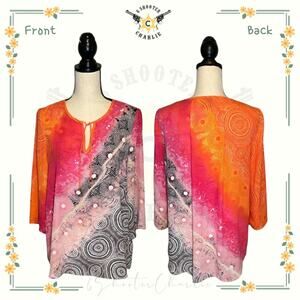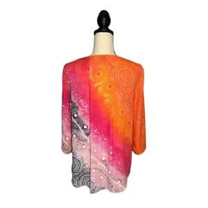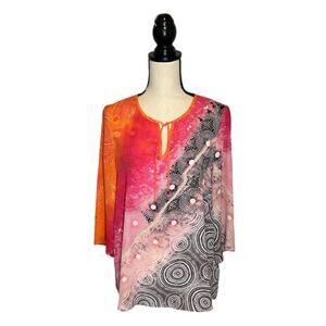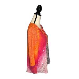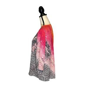 Rafaella Sundials Print Satin Crinkle Tunic Top Women's Size Small Pink Peacock