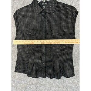 Rafaella Top Black Polka Dot Button Up Sleeveless Blouse Women's Size 14 Business