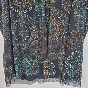 Rafaella Top Fairy Grunge Sequin Neck Dark Print Mesh Overlay Lined WOmens 2X
