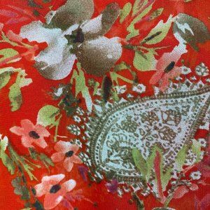 Rafaella Top L Floral Red Green Semi Sheer Smocked Short Dolman Sleeve