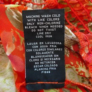 Rafaella Top L Floral Red Green Semi Sheer Smocked Short Dolman Sleeve Women's Large