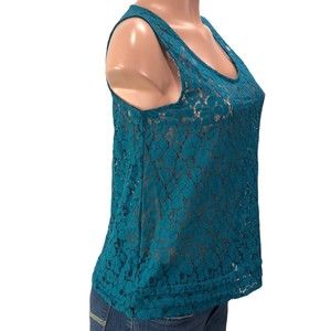 Rafaella Top Womens Medium Sheer Lace Mesh Blue Floral Beach Boho Blouse…