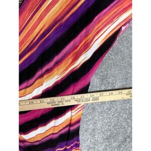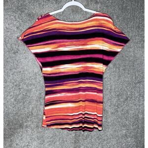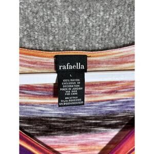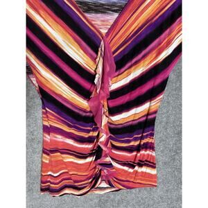Rafaella Top Womens Size Large Pink Orange Purple V-Neck Striped Ruffle Rayon