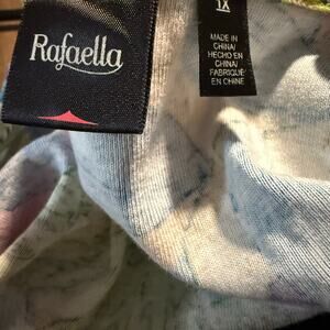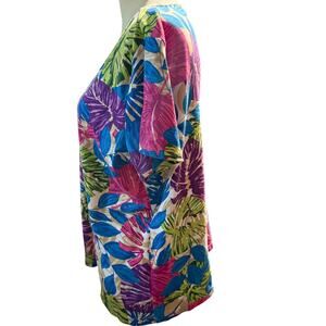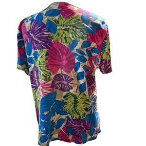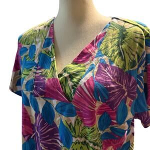 Rafaella Tropical Print V-Neck Short Sleeve Blouse, Women's Plus Size 1X. Add a pop of vibrant color to your wardrobe with this Rafaella tropical print blouse. Featuring a leafy floral pattern, this lightweight top is perfect for vacation, resort wear or everyday style. 100% cotton. Excellent condition.